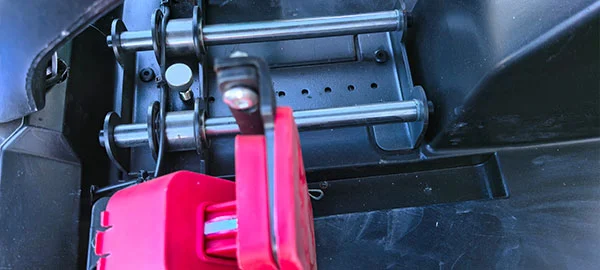L'étiquette est clairement visible sur le châssis près de la colonne de direction (sous le volant) pour une inspection facile.